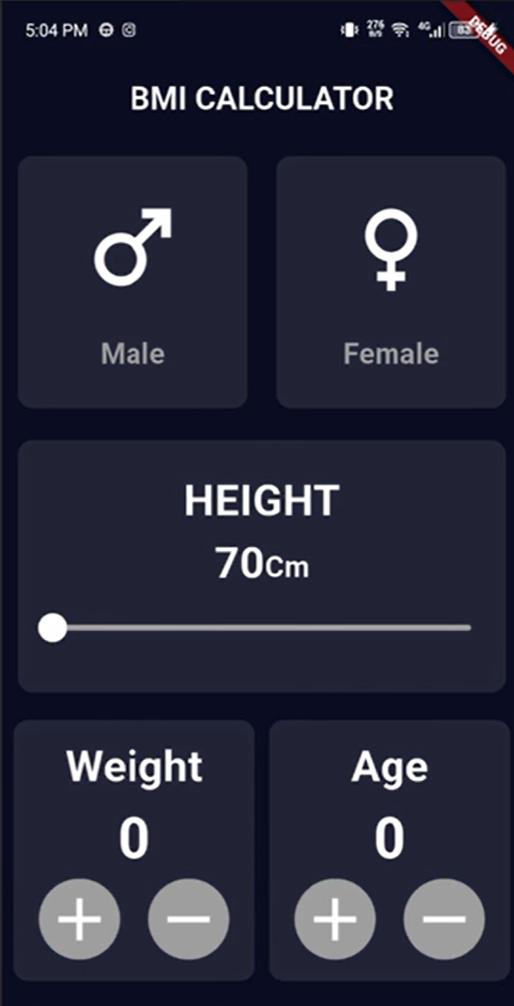 This app allows users to input their height and weight to calculate their Body Mass Index and see which health category they fall into.